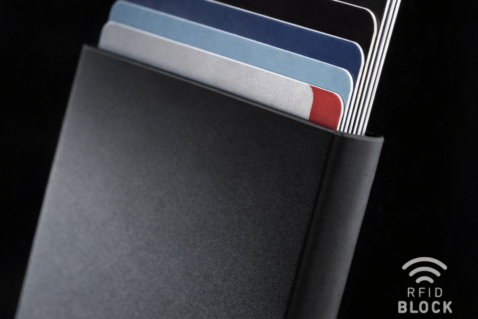 Protege tus tarjetas contra escaneos no autorizados gracias a su estructura de aluminio con bloqueo RFID.